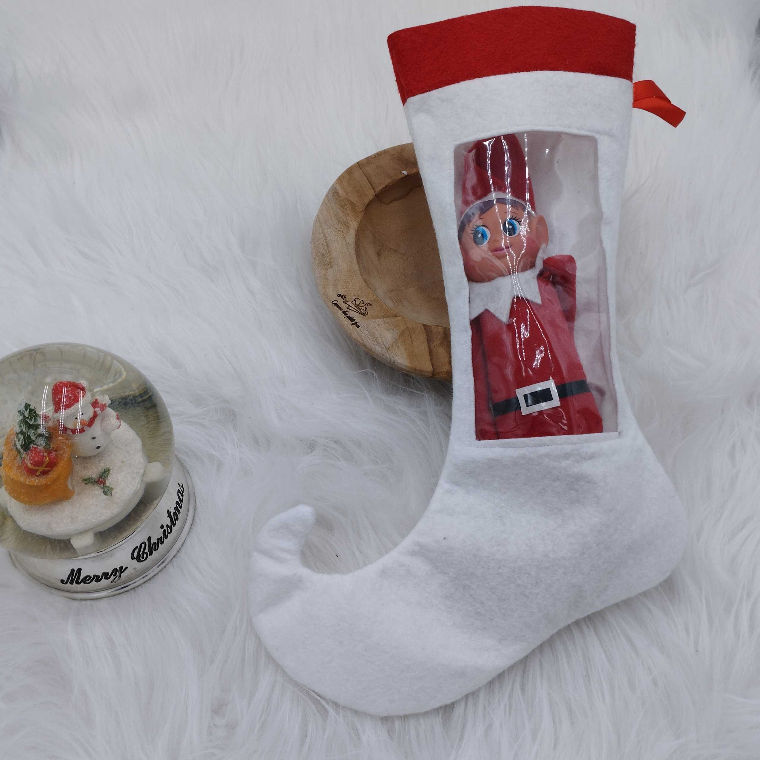 Je vous propose la chaussette de lutin avec fenêtre, qui lui permettra de faire une arrivée remarquable à la maison. Il peut aussi décider de s'y reposer la journée afin d'être en forme pour la nuit de farces qui l'attend.