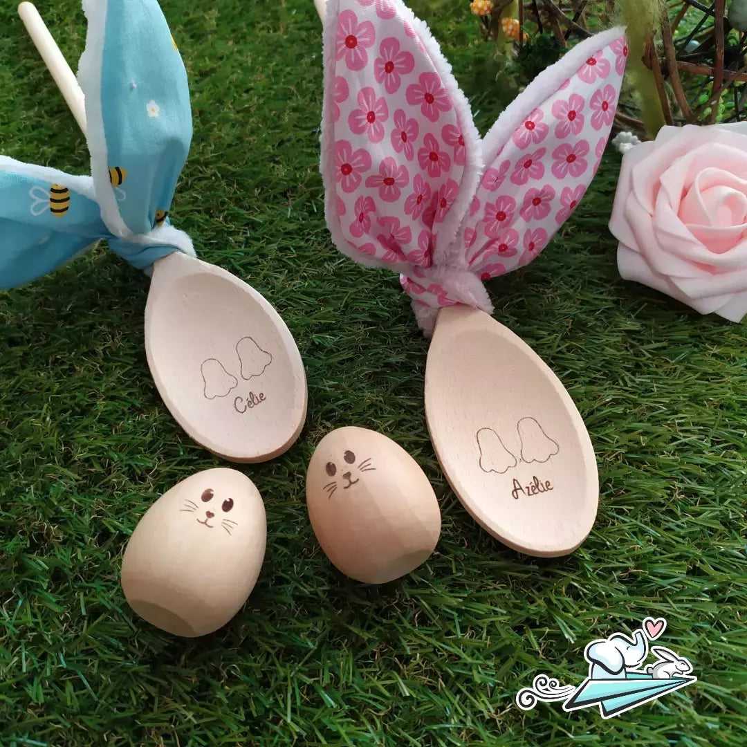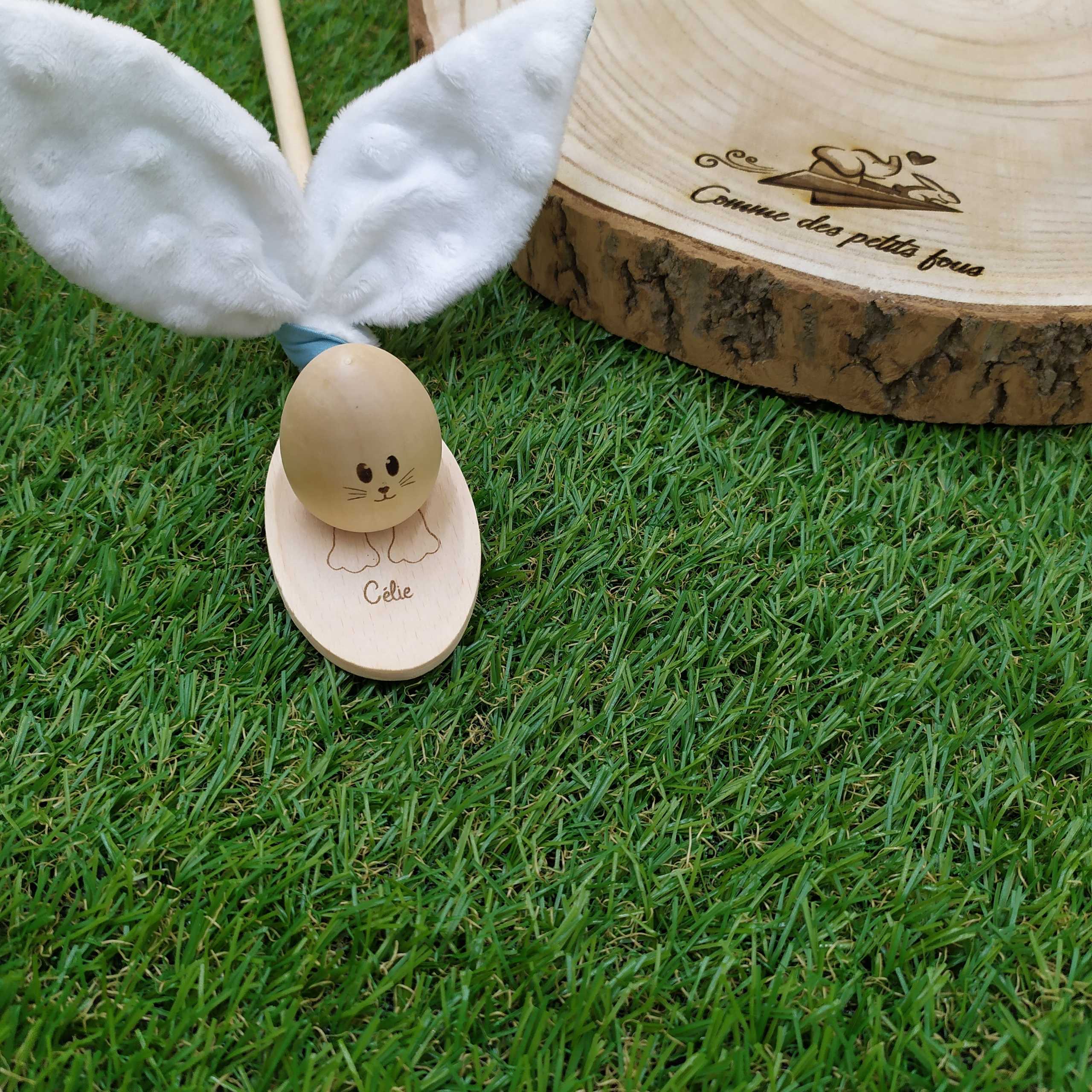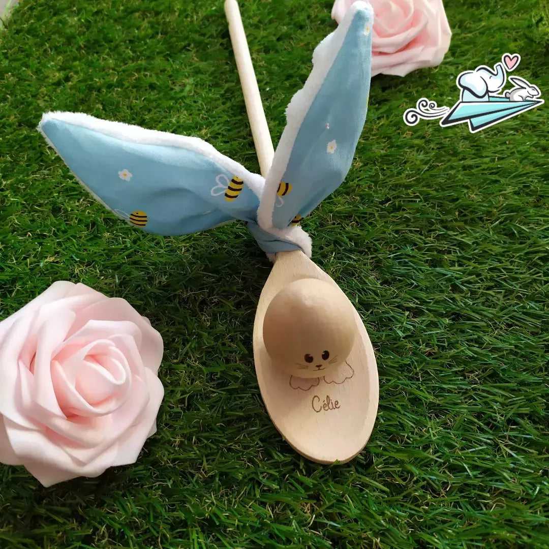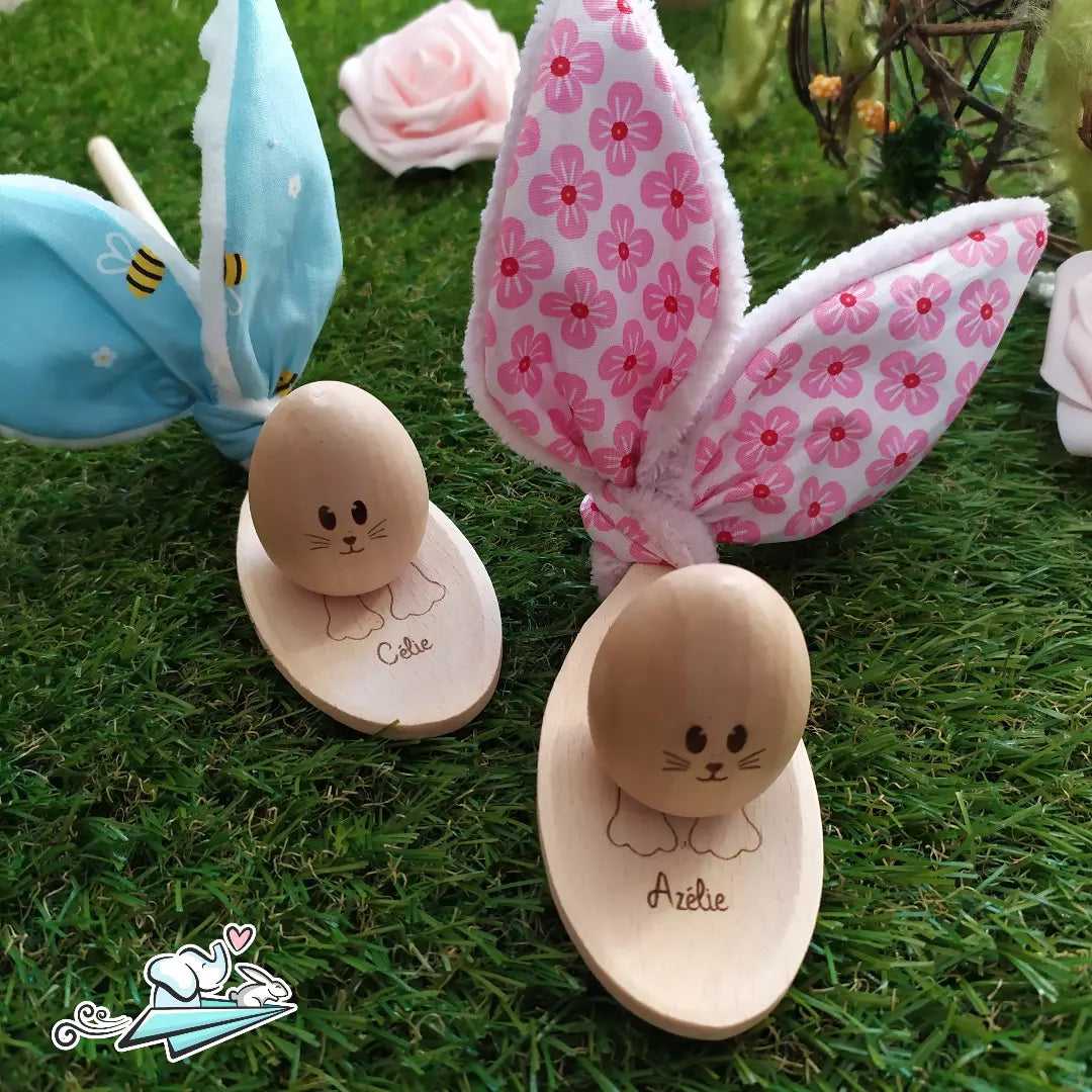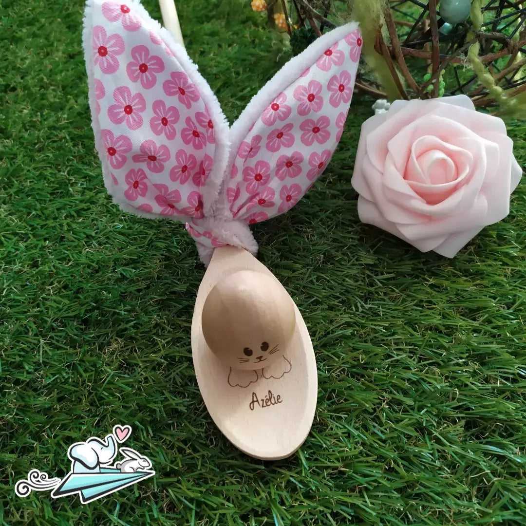 Votre choix de tissus pour ses oreilles ainsi que le prénom pour la gravure du petit lapin en fera un objet unique.