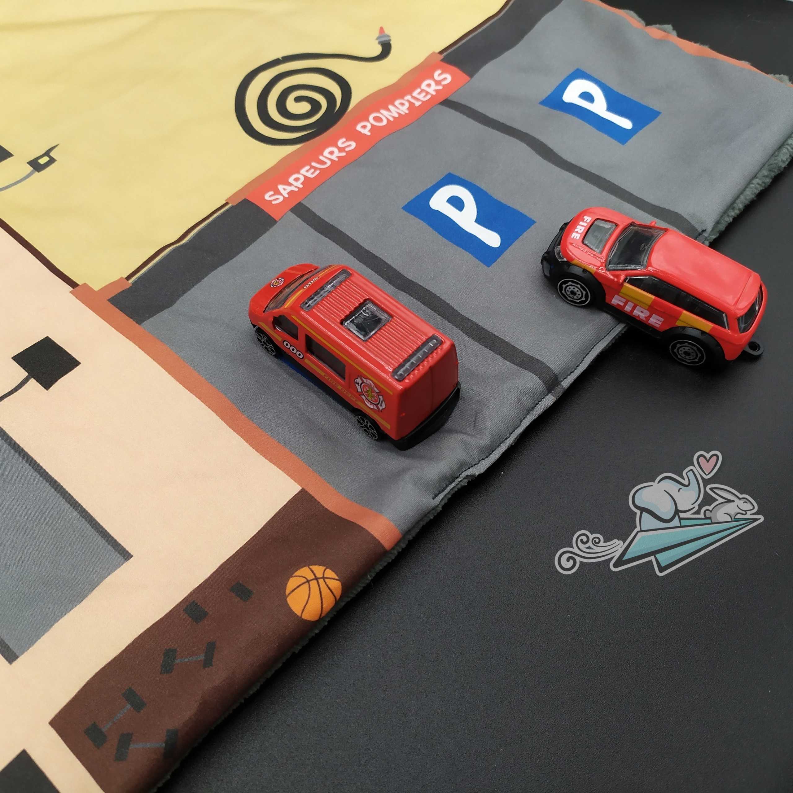 Ce tapis de jeu, 2 en 1, offre un univers de jeu sur la thématique des pompiers, ainsi qu'une seconde face toute douce pour pouvoir être positionnée en descente de lit, par exemple, et avoir un gain de place lorsqu'il n'est pas utilisé.