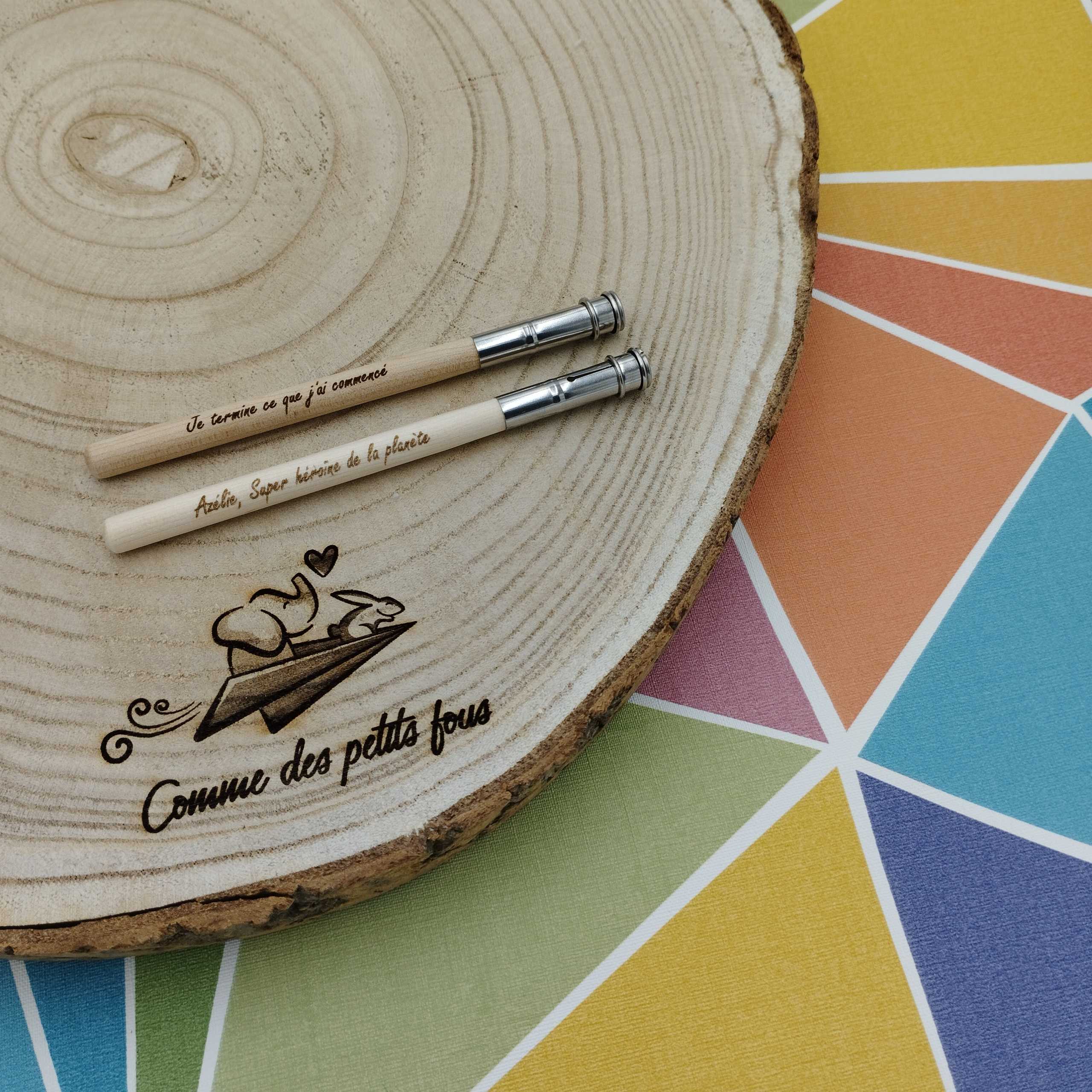 Ce porte crayon en bois à personnaliser avec un petit message bienveillant ou simplement le prénom du destinataire, permet une action éco-responsable et d'utiliser ses crayons de couleurs intégralement, en apportant le confort d'un crayon neuf lors de l'utilisation.