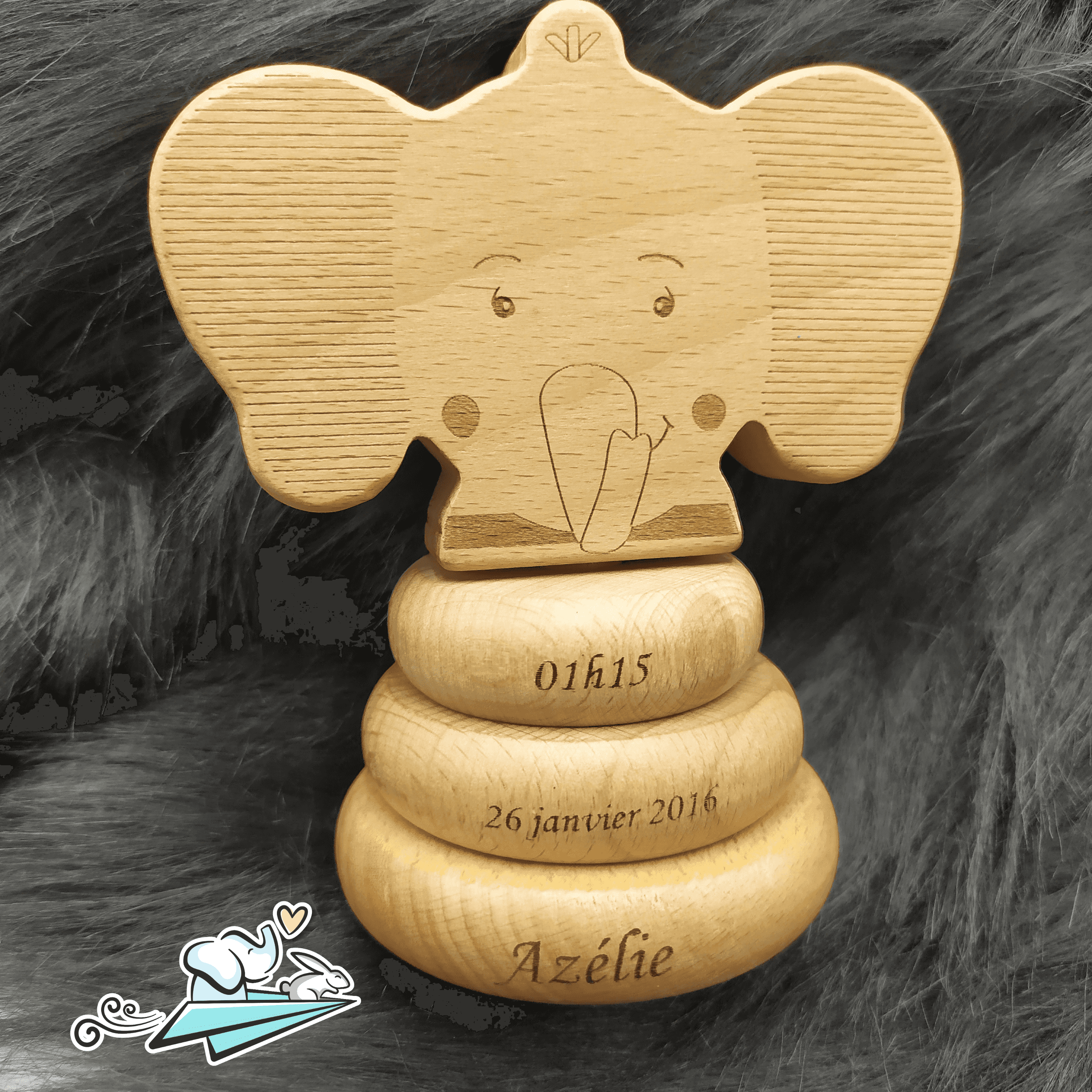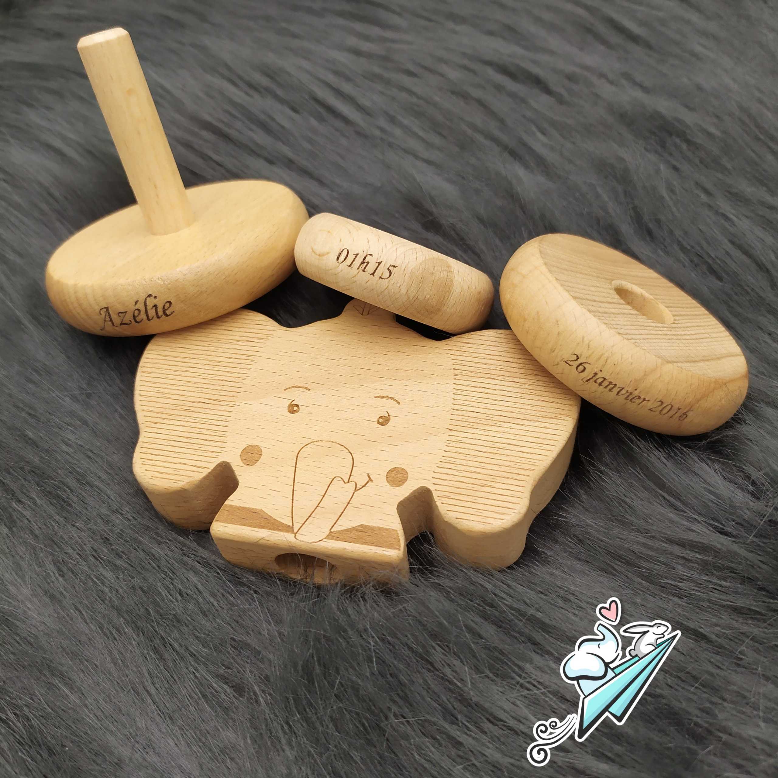 Si vous êtes à la recherche d'un petit cadeau ludique, original, personnalisé et fait main par un artisan français pour la naissance ou l'anniversaire d'un bébé, cette tour d'anneaux est une idée cadeau parfaite !